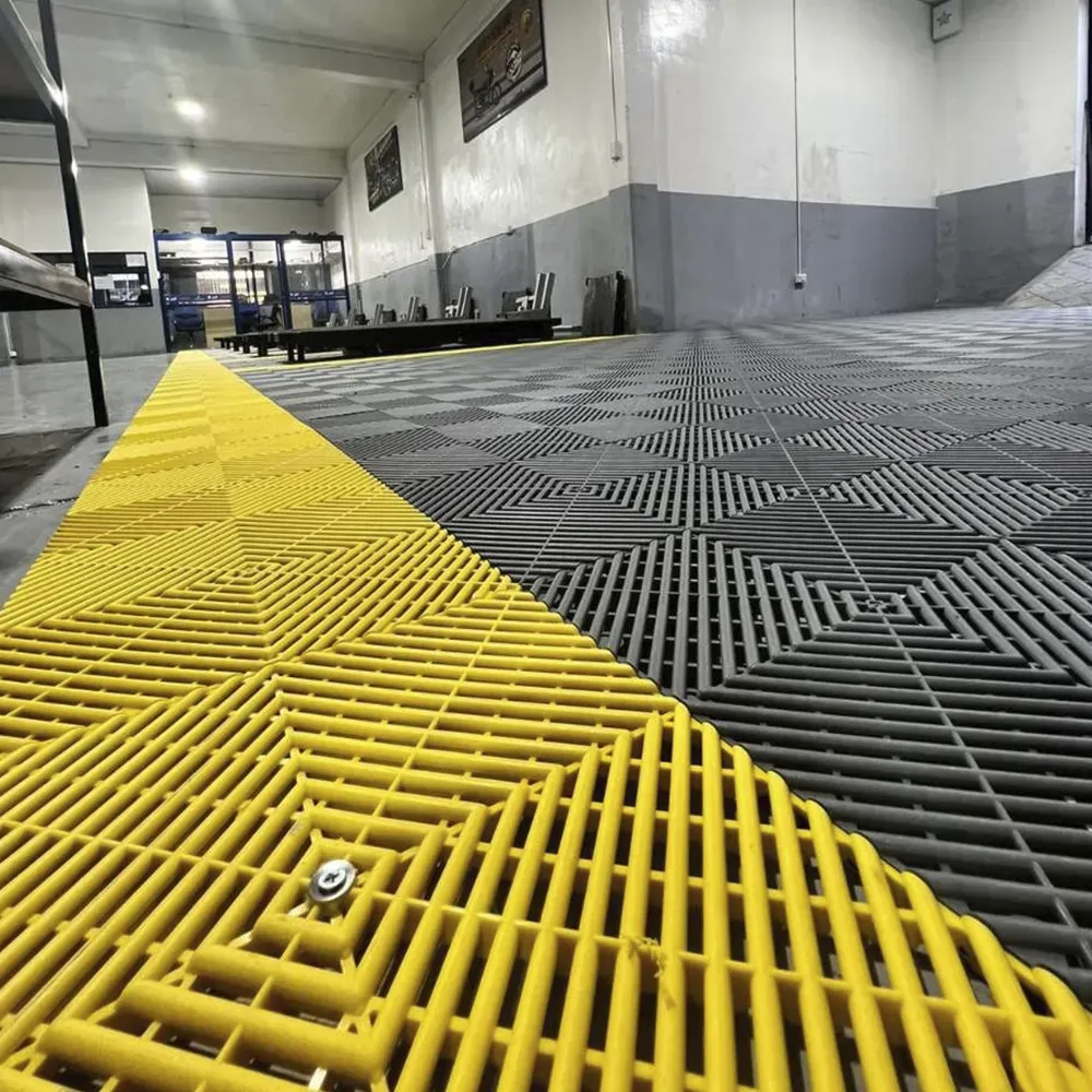 Baldosas perforadas que permiten el drenaje de líquidos. Transforma tu espacio de trabajo con nuestros pisos plásticos modulares, donde la calidad, la seguridad y la estética se unen para ofrecerte el mejor rendimiento.