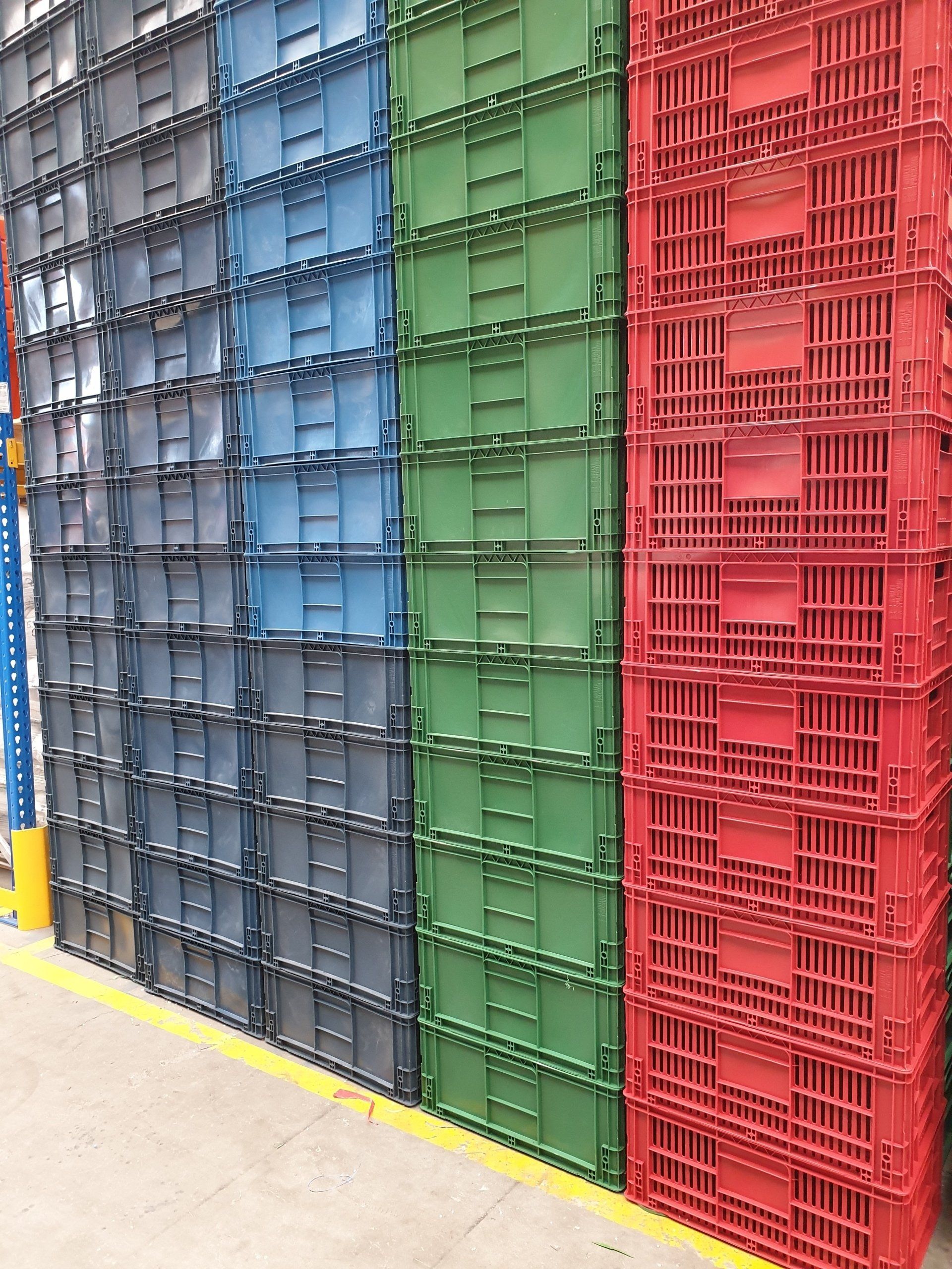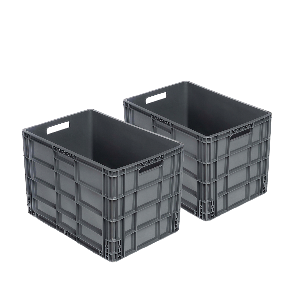 - Fondo y paredes perforadas: ideales para frutas, verduras y productos frescos. Permiten una óptima circulación de aire, control de humedad y conservación en la cadena de frío.